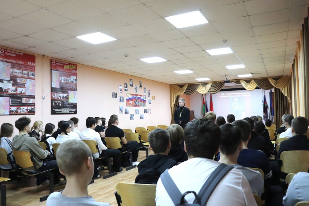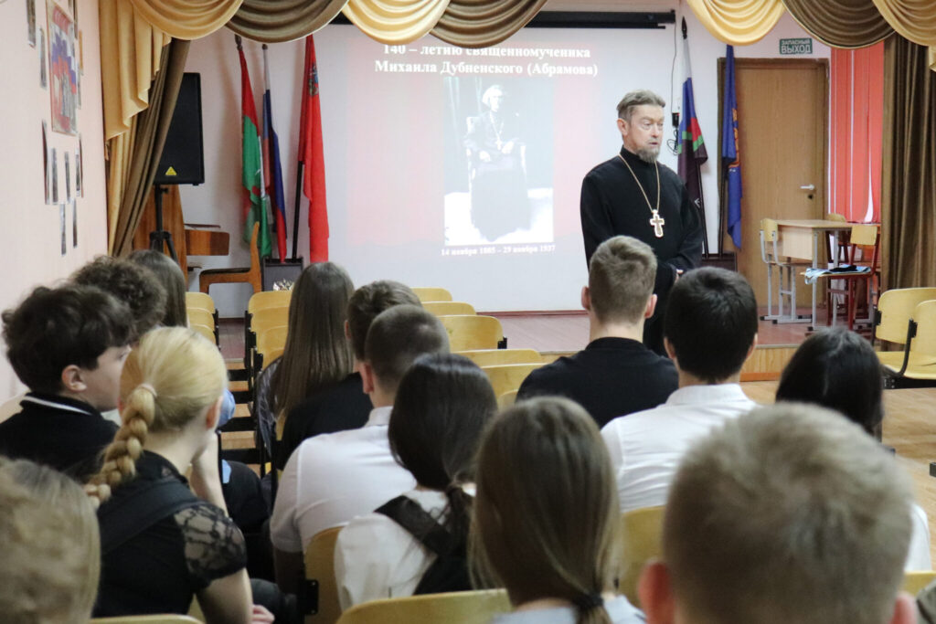 28 ноября 2025 года в актовом зале Вербилковской средней общеобразовательной школы для учащихся 9-х классов состоялась памятная встреча. Мероприятие, посвящённое 140-летию со дня рождения священномученика Михаила Дубненского (Абрамова), провёл настоятель Александро-Невского храма рп. Вербилки протоиерей Андрей Крутяков.