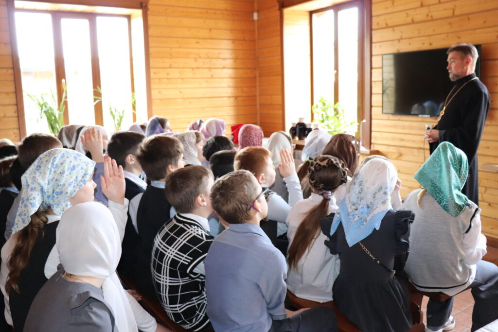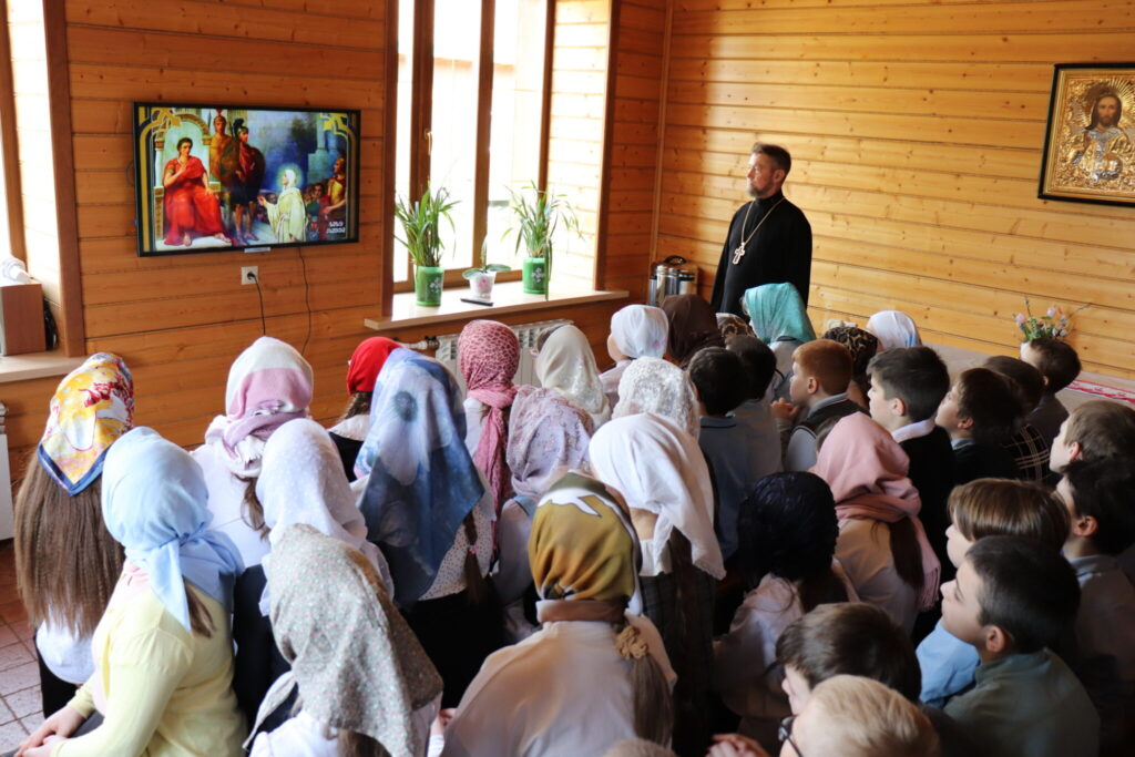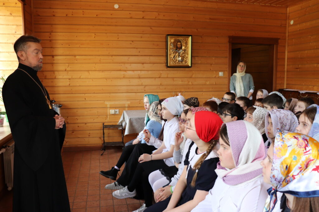 Отец Андрей рассказал четвероклассникам о старинной традиции звонить в колокола на Пасху. Батюшка объяснил, что во время всей Светлой седмицы каждый желающий может позвонить в колокола, выражая радость о Воскресении Христовом. Школьники с восхищением слушали торжественный пасхальный перезвон, который наполнял особым настроением весь посёлок. Довольные и полные впечатлений четвероклассники покидали храм с новыми знаниями о главном христианском празднике.